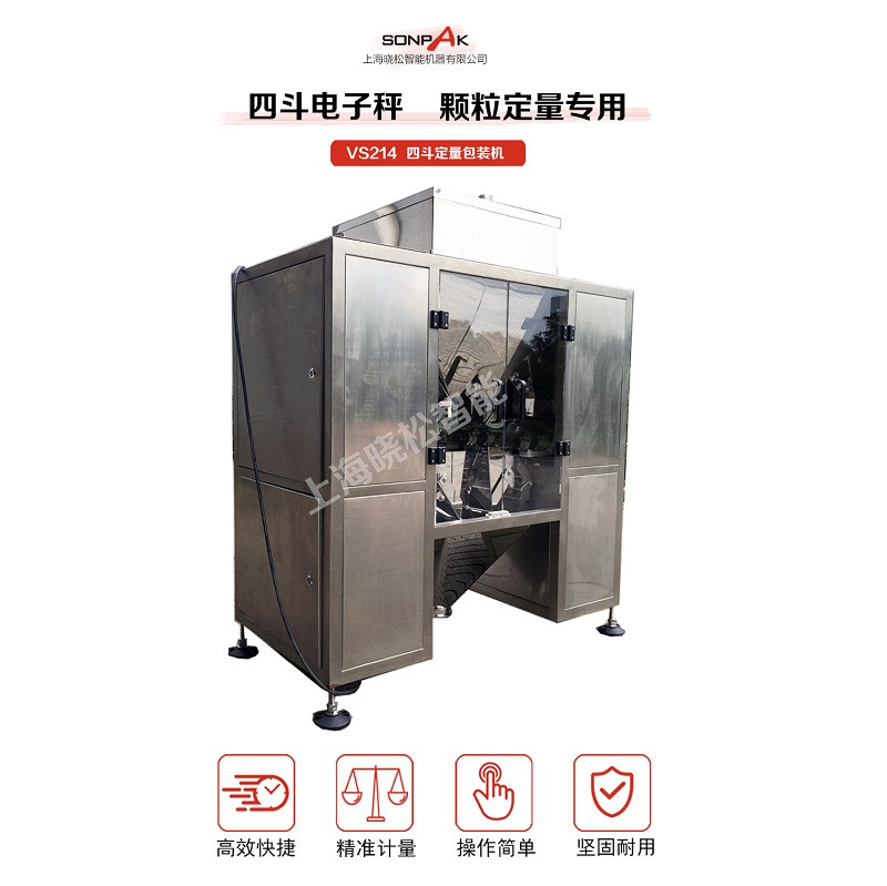 /Process更多VS214四斗定量包裝機(jī)詳細(xì)報價,生產(chǎn)交貨周期,售后服務(wù),使用說明請于曉松智能官網(wǎng)業(yè)務(wù)部聯(lián)系或致電:021-59162108