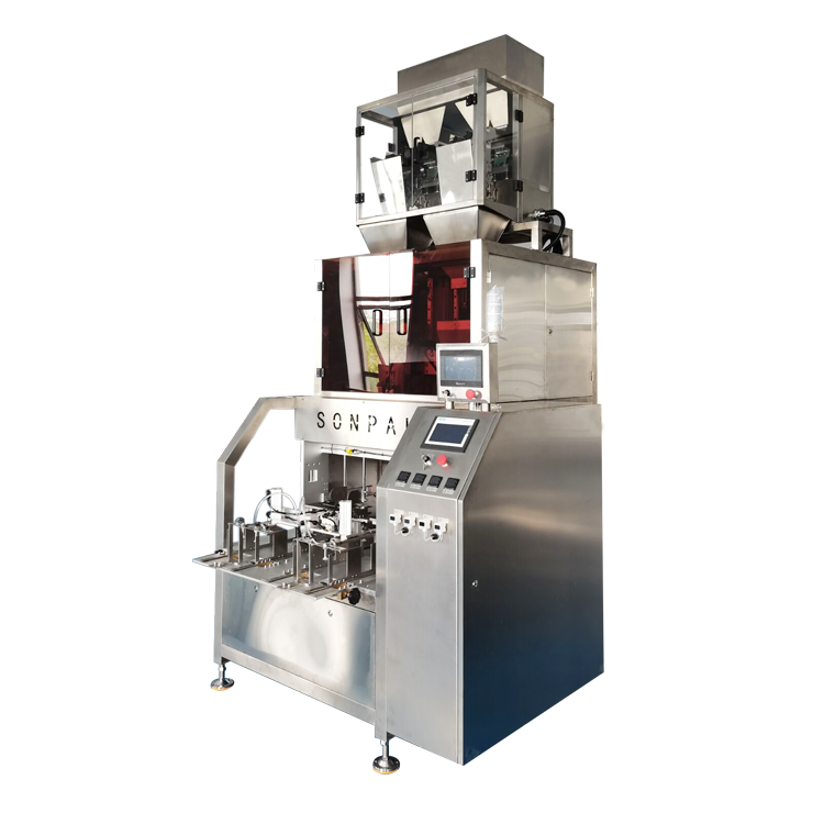 適用于貓砂等形狀均勻、流動性較好的顆粒物料的真空整形包裝。全自動化,有效節約生產成本,能自動取袋、送袋、開袋、上袋、充填、整形抽真空、封口、成品輸出。